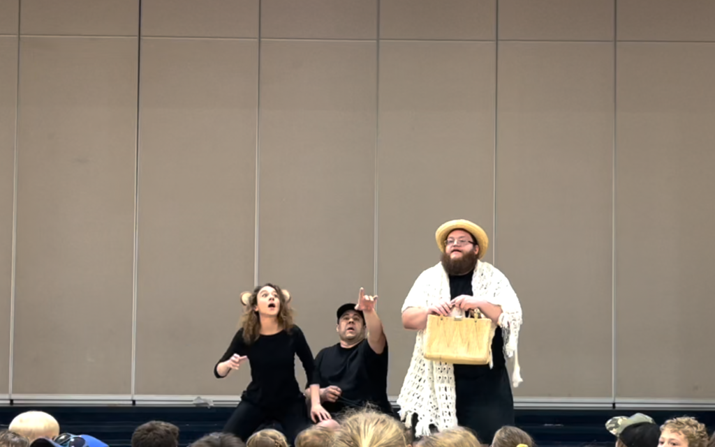The workshop begins with our signature 10-minute roll-on-the-floor-laughing play about a monkey at a baseball game. The kids learn about the magic of theater through questions like, “Could you see the ball? Even though there wasn’t a real ball?” The performance also includes a modern adaptation of a classic sketch, monologues, and concludes with a surprise performance by your teachers/counselors.